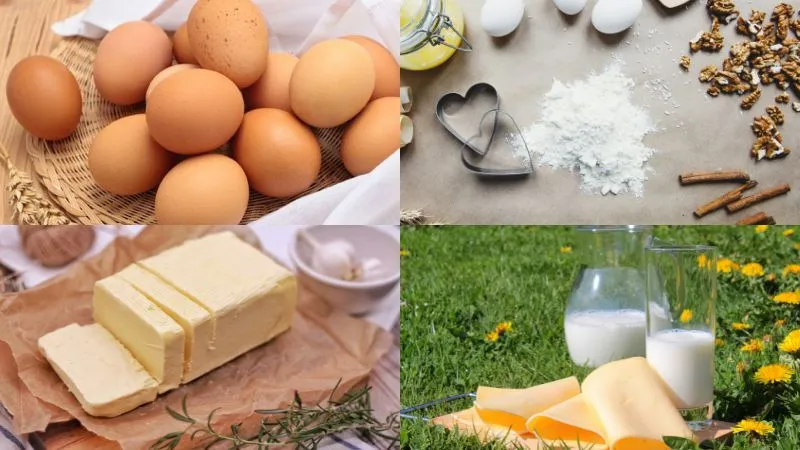 - Bước 2: Đập 2 quả trứng gà cho vào tô, thêm 300ml sữa tươi, 50gr bơ đã đun chảy vào tô bột bên trên và trộn đều.