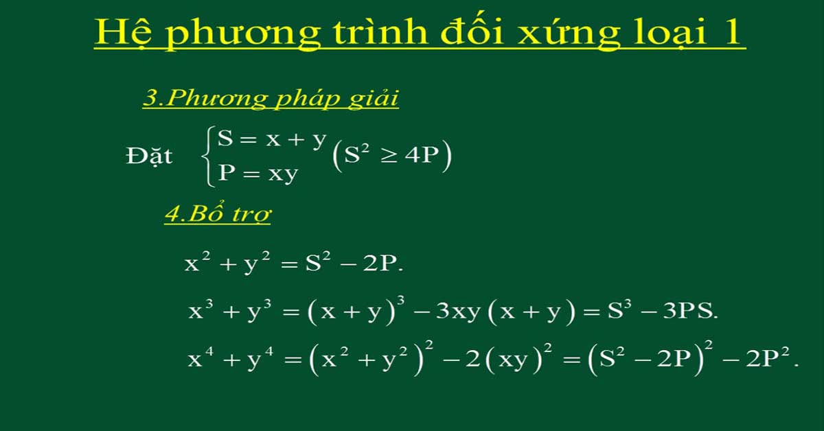 Đây là phương pháp chung để giải các hệ phương trình đối xứng loại 1.