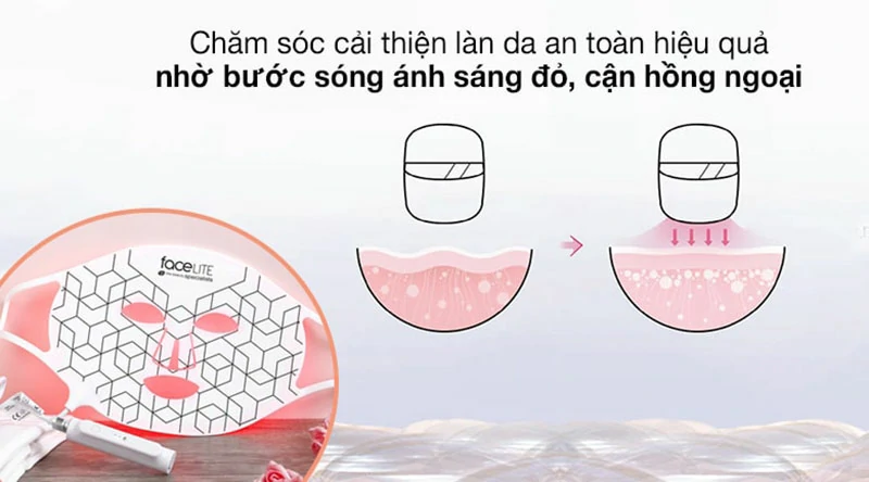 - Hiệu quả cao trong việc kích thích sản sinh collagen và elastin nhờ công nghệ ánh sáng đỏ. Bên cạnh đó còn giúp nâng tone cho những làn da xỉn màu, trẻ hóa làn da.