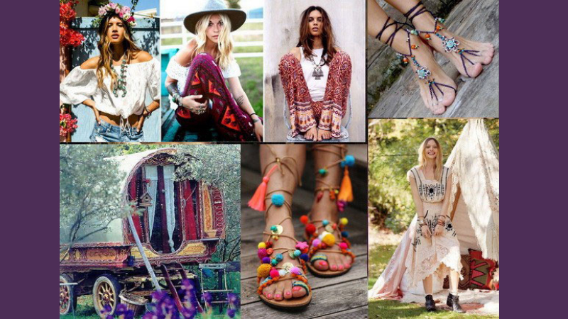 Phong cách Bohemian nổi bật với những họa tiết độc đáo và có sự hiện diện của thiên nhiên. Thời trang Bohemian thường đi cùng với những tông màu của đất như nâu, denim, đỏ tía hoặc xanh lá từ cỏ cây.
