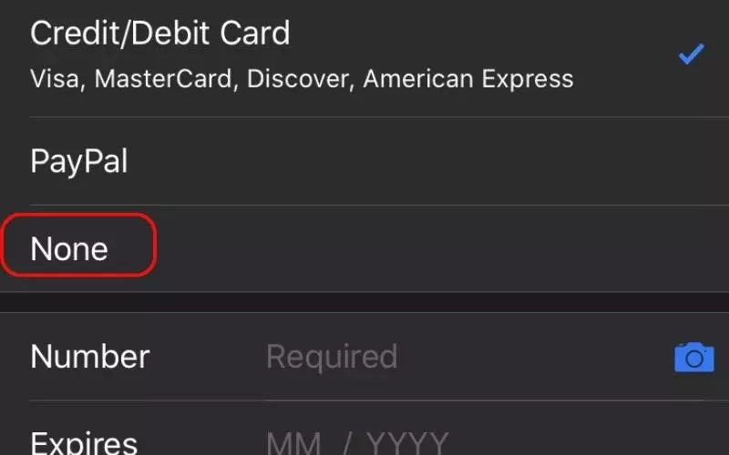 - Bước 4: Điện thoại sẽ chuyển sang giao diện điền thông tin -> Nhấn vào mục None dưới cùng -> Bạn không cần phải điền thông tin gì ở phần này.